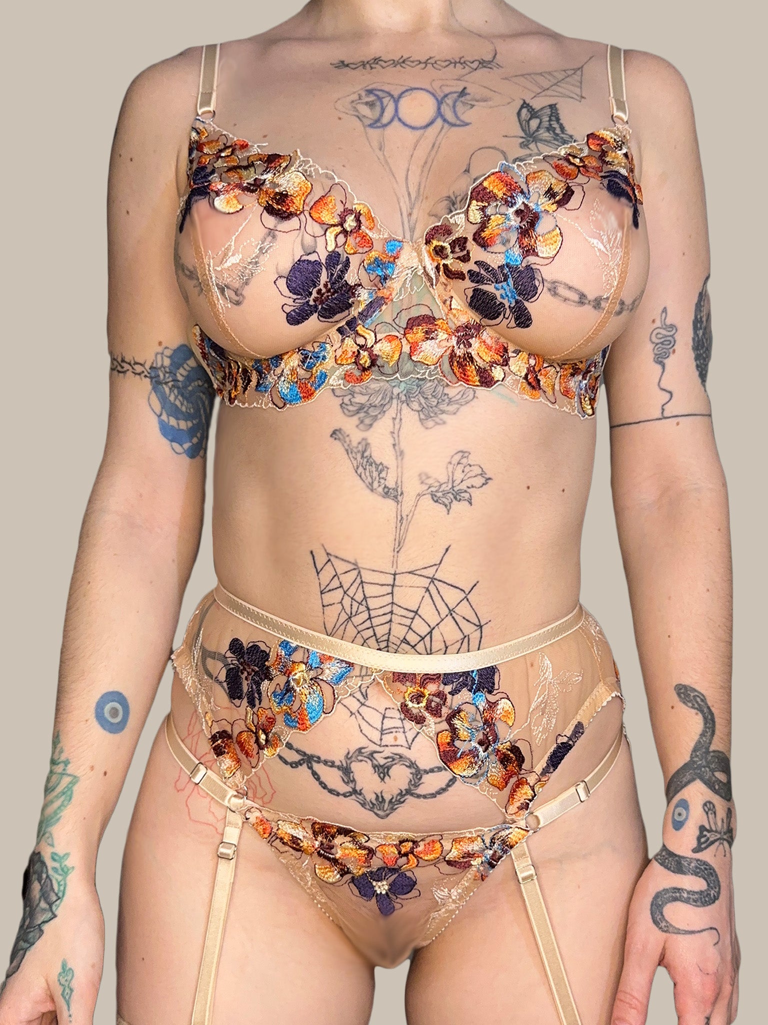 Decadent, embroidered lace. Ethically handmade in limited runs by an independent atelier run by women in Ukraine, paid fair wages.